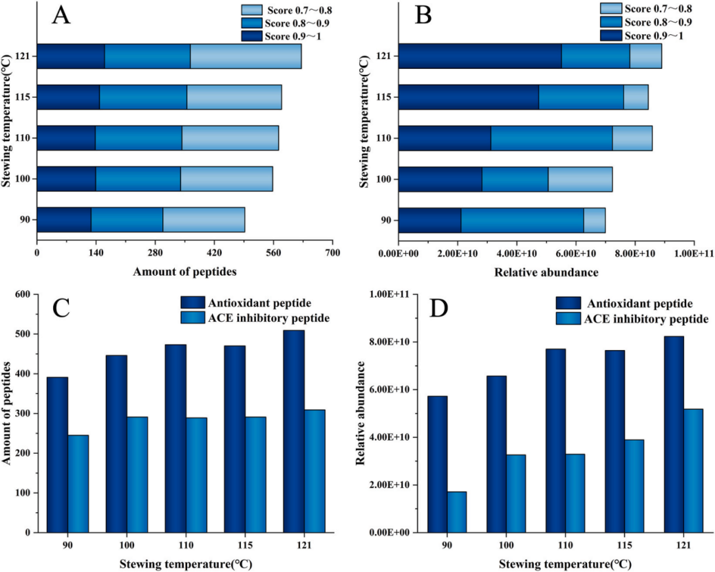 而燕之屋本次與江南大學(xué)合作發(fā)表的權(quán)威SCI論文,則在這一認(rèn)知基礎(chǔ)上實(shí)現(xiàn)了更深層次的突破。研究表明,121℃燉煮工藝不僅使燕窩蛋白更易被消化,更在此基礎(chǔ)上促進(jìn)了具有特定生理功能的小分子活性肽的釋放② 。具體實(shí)驗(yàn)數(shù)據(jù)顯示,經(jīng)過(guò)121℃燉煮的燕窩,相較于傳統(tǒng)燉煮的燕窩,活性肽的數(shù)量增加了27.2%,含量上升了27.3%,同時(shí),其ACE(血管緊張素轉(zhuǎn)化酶)抑制活性提升了28.6%② 。ACE抑制活性是現(xiàn)代健康科學(xué)中公認(rèn)的一項(xiàng)重要生物功能,代表著有助于維持健康血壓水平、保護(hù)心血管系統(tǒng)健康的潛力② 。這項(xiàng)研究結(jié)果通過(guò)量化數(shù)據(jù)揭示了,科學(xué)的燉煮工藝能夠增加燕窩中特定活性物質(zhì)的含量,同時(shí)增強(qiáng)燕窩在特定健康領(lǐng)域的生物活性潛力。